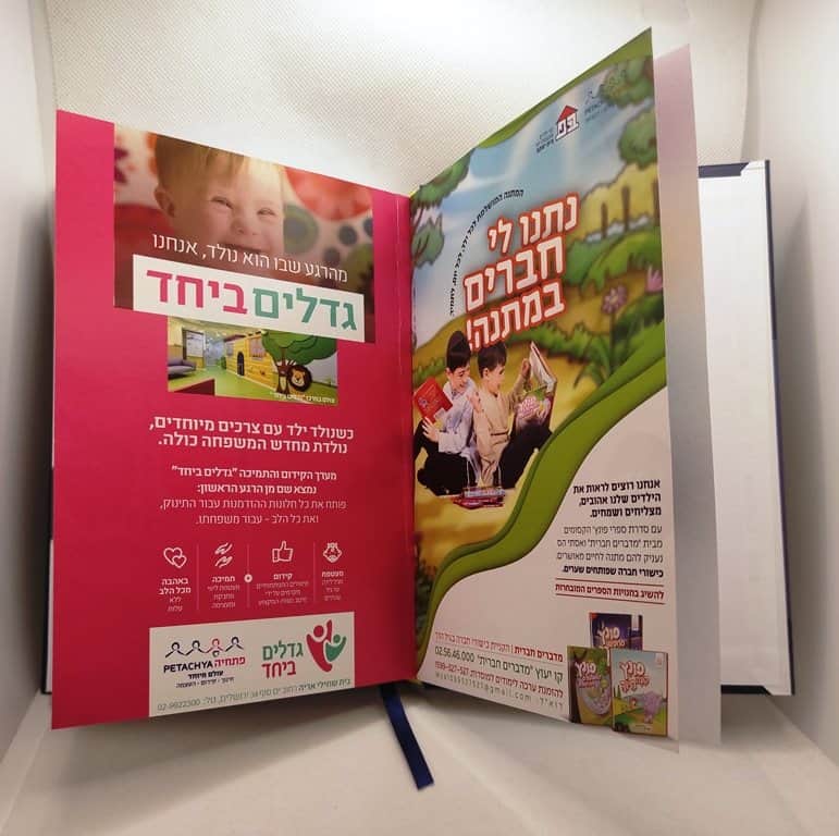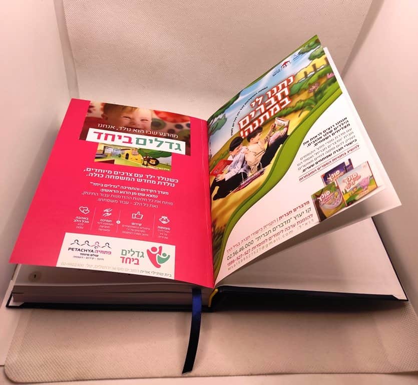 גוף היומן תפור עם דפי פרסום